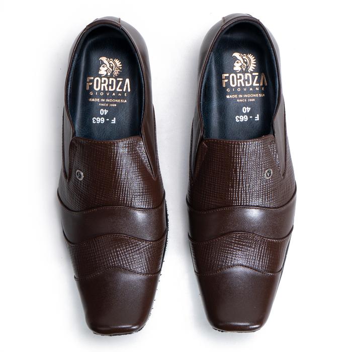 Sepatu Pantofel Pria Formal Kantor Branded Lokal Kulit Asli Original Fordza F663 - Hitam, 38