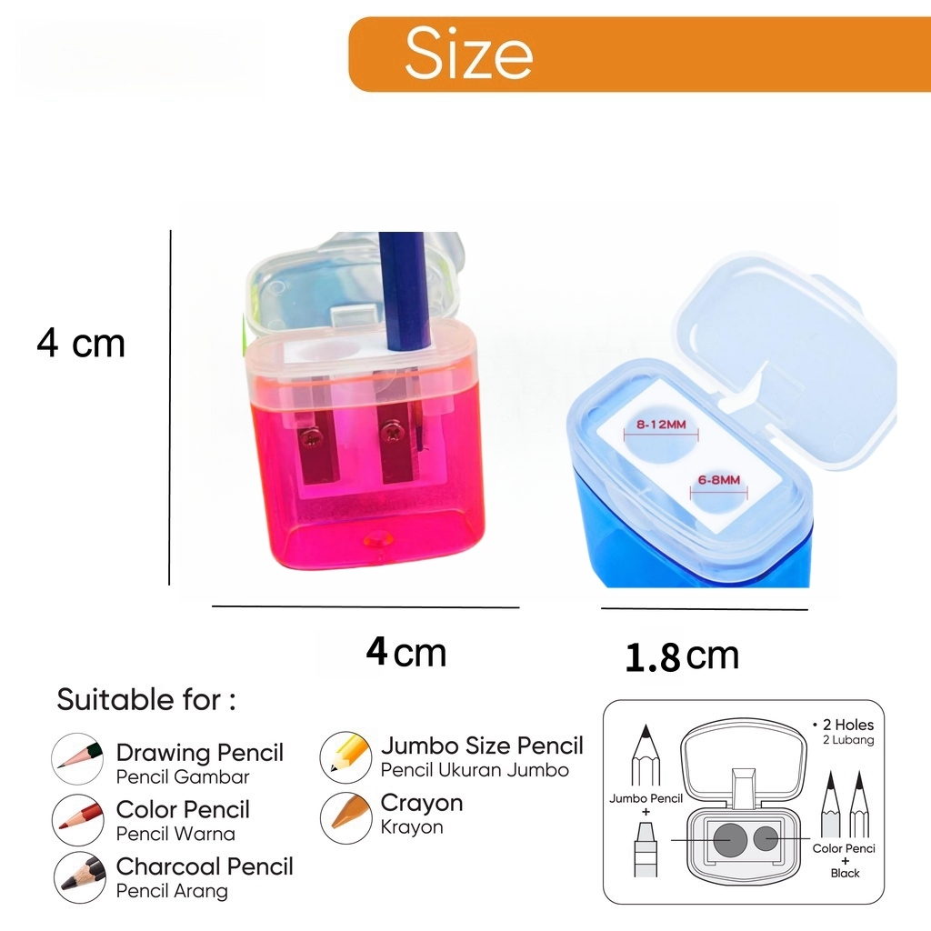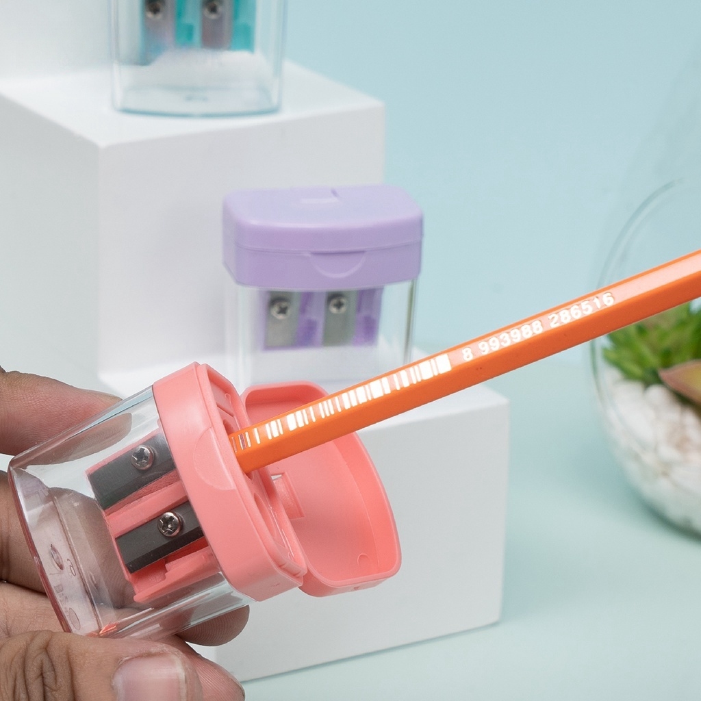 Rautan Pensil Ganda Manual Rautan Serutan Sharpener 2 In 1 Pastel Color
