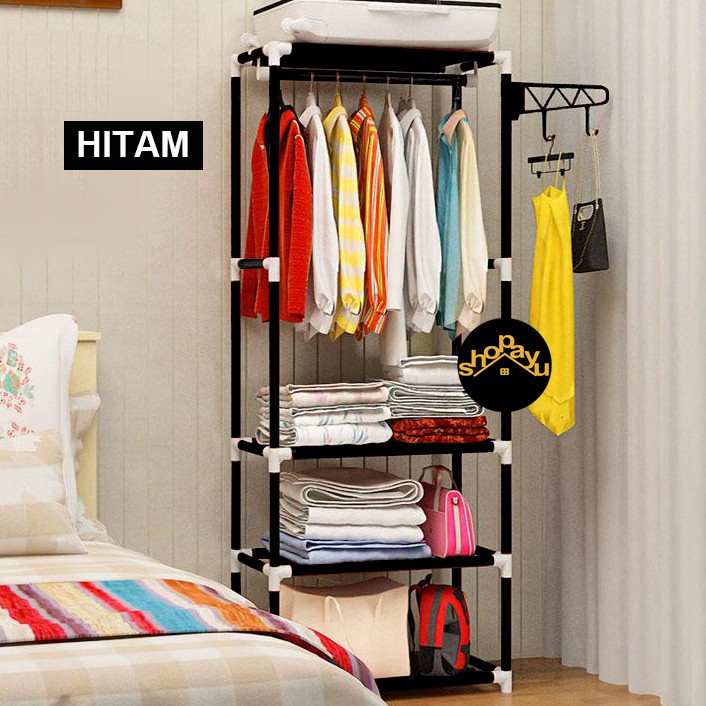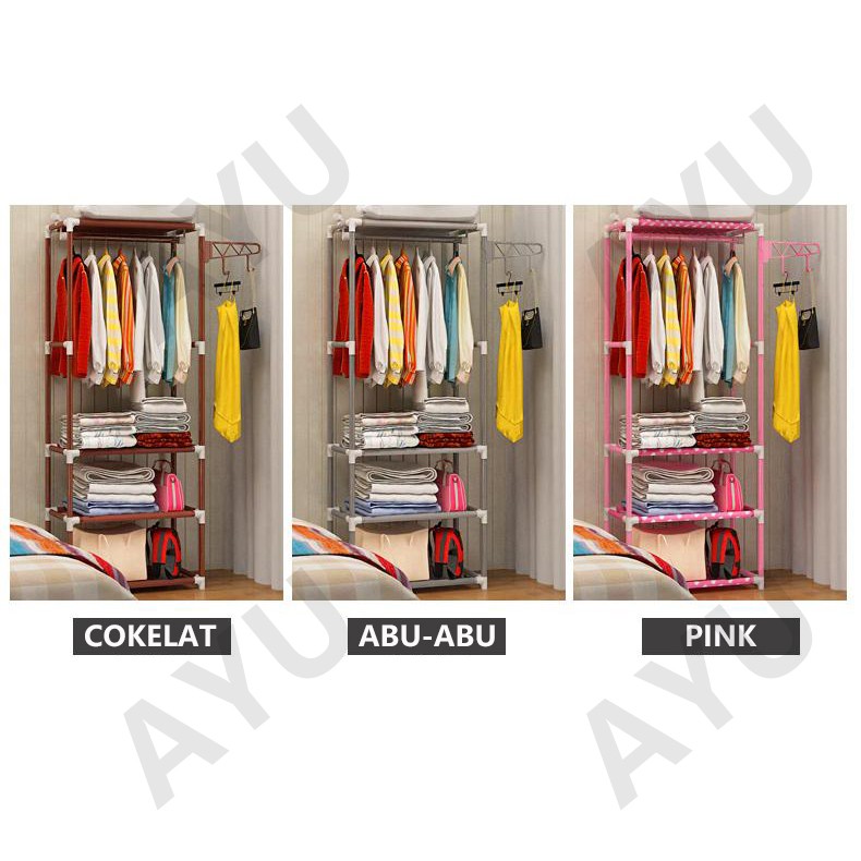 Square stand hanger rak baju portable lemari pakaian tanpa cover
