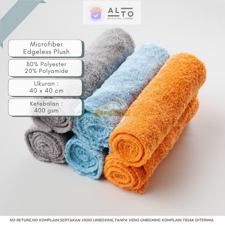 Kain Lap Microfiber Edgeless Plush 400gsm 40x40 cm Handuk Dua Sisi Tanpa Jahitan Samping Serbaguna Premium
