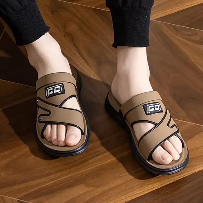 [Star]Sandal Pria Kasual selop kulit Import Karet size 39-43 - Dark Brown, 39