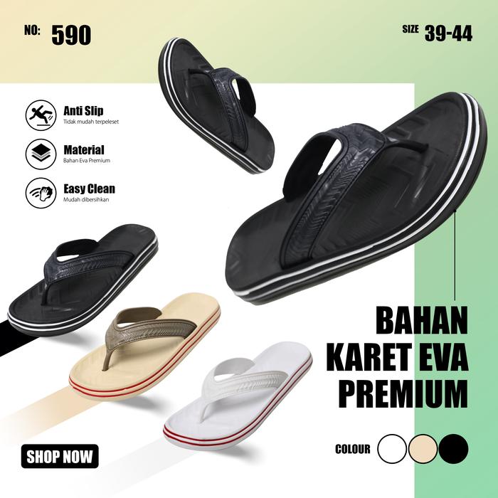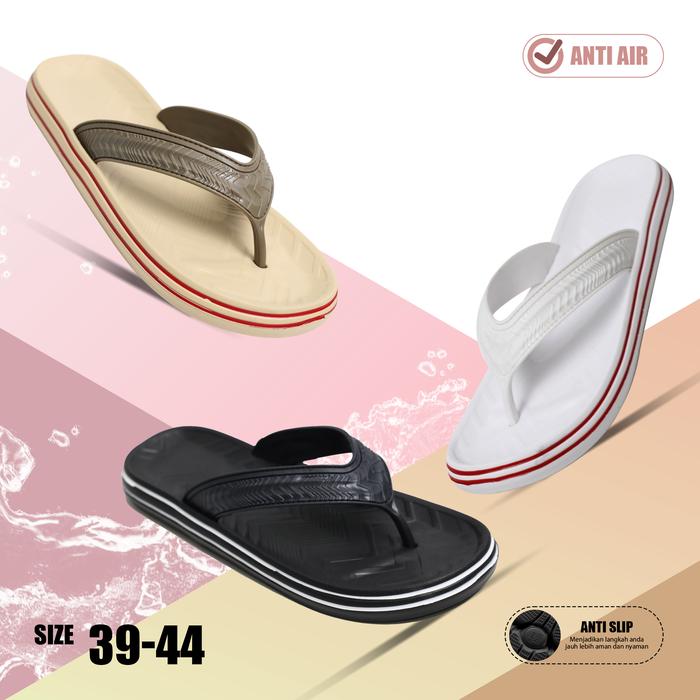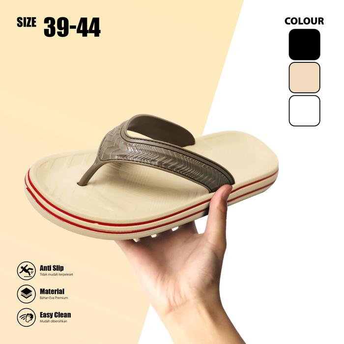 [Star]Sandal Jepit Pria Dewasa Anti Slip Anti Licin Bahan Karet Eva Premium - hitam, 41/42, Standar