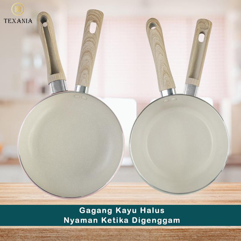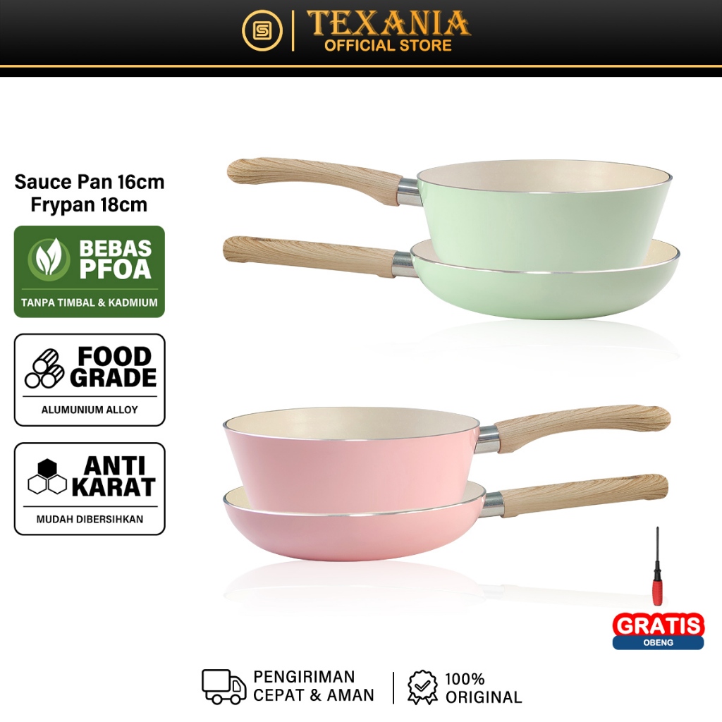 TEXANIA Set Peralatan Masak Wajan Penggorengan 2 Pcs,Sauce Pan 16cm & Frypan 18cm Bahan Alumunium Panci Mie,Granit Coating, Anti Lengket, Mudah Dibersihkan,Free Obeng Kitchenware Bebas PFOA PFOS
