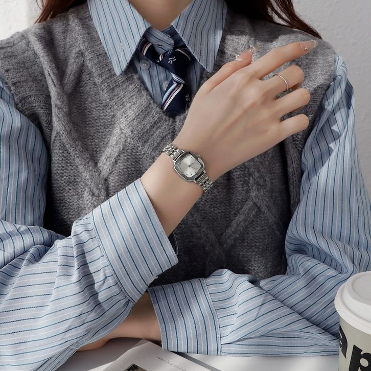 DGC JW344 Jam Tangan Wanita Rantai Stainless Steel Kotak Tile Simple Casual Quarts Jam Tangan Fashion (free Baterai)