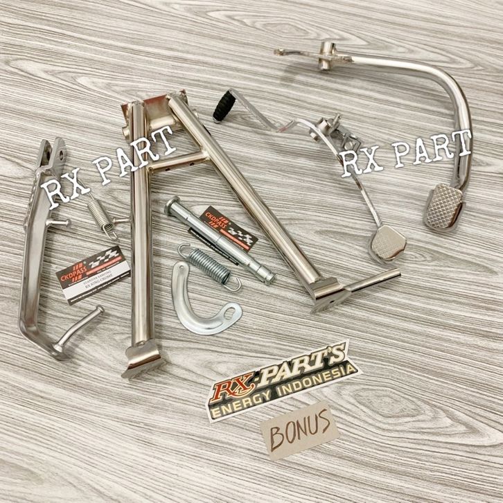 Standar tengah+standar samping+operan gigi+pedal rem+as standar tengah+kuda2 standar tengah RX KING