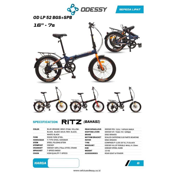 SEPEDA LIPAT / FOLDING BIKE ODESSY RITZ 20" 62 7 SPEED - / INSTAN