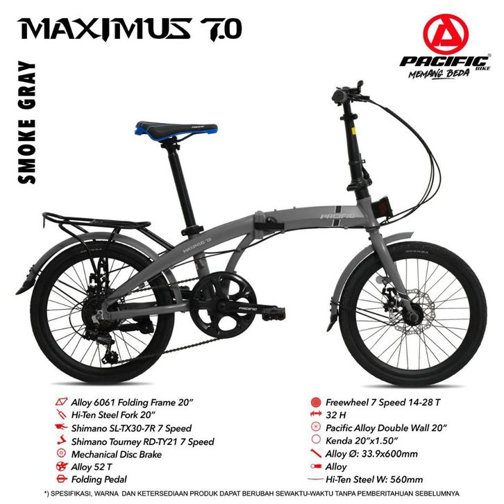 SEPEDA LIPAT 20 INCH DEWASA PACIFIC MAXIMUS 7.0 ALLOY 7 SPEED / PACIFIC SPLENDID 300