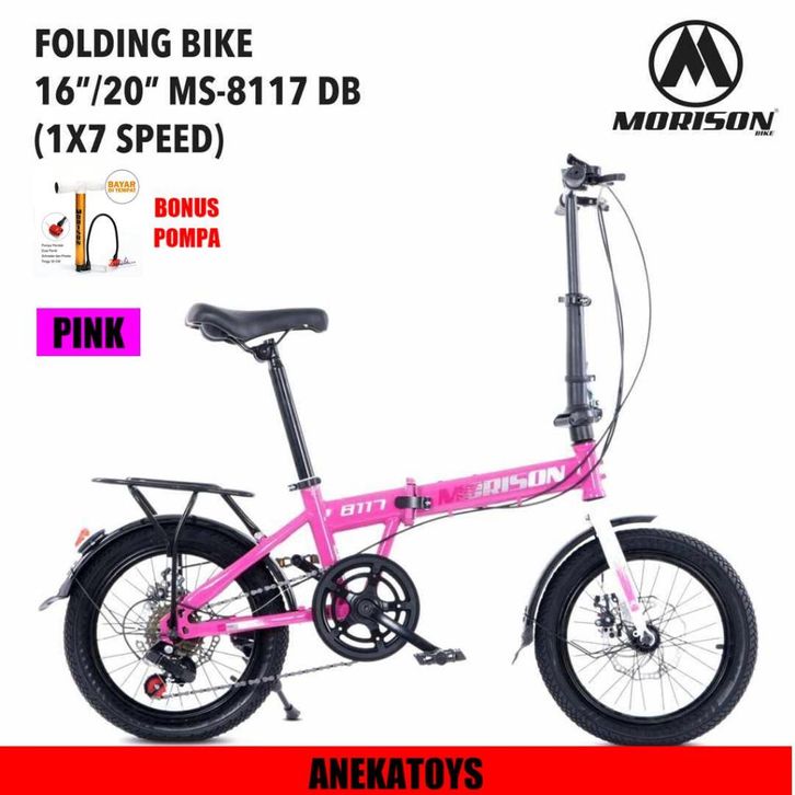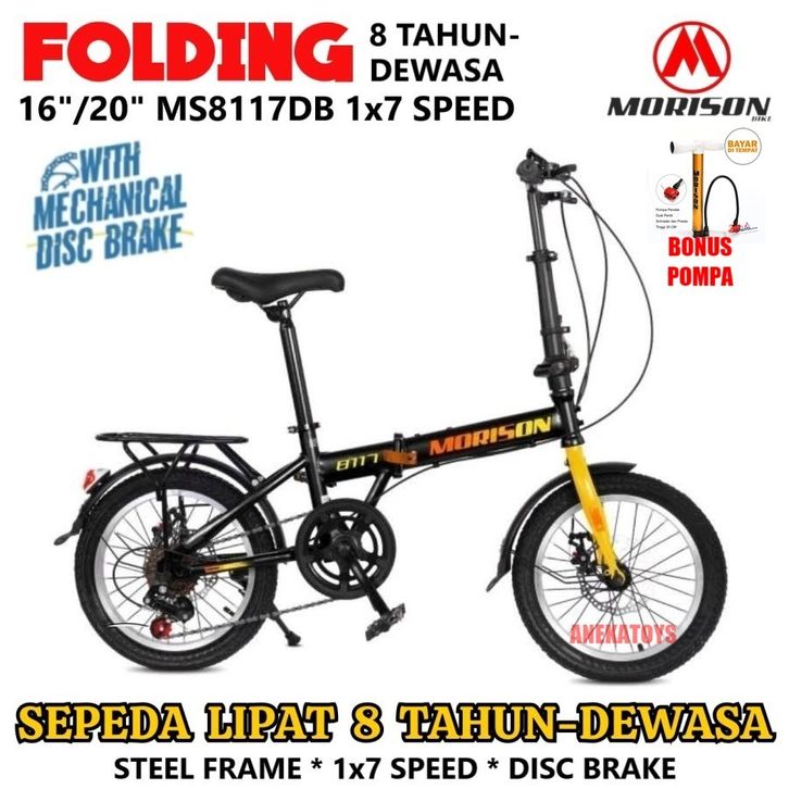 Sepeda Lipat Morison MS8117 Cakram 1x7Sp DB 16,20x1,75 Inci H-Ten Steel Folding Bike