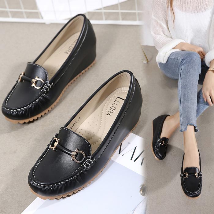 Ellora E1212 Sepatu Kerja Wanita Wedges Import Premium Shoes Kasual Slip Resistant Elegant - Black, 37