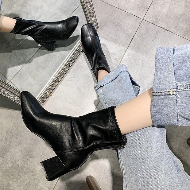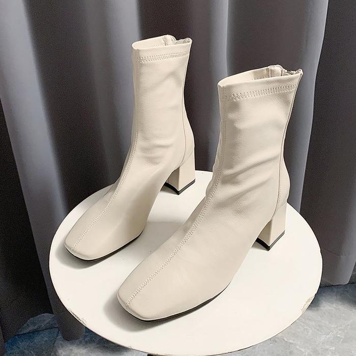 Pinkey P026 Sepatu Boots Heels 6 Cm Wanita Terkini Flat Terlaris Populer Kulit Hitam Beige Khaki Best Seller Shoes - Hit