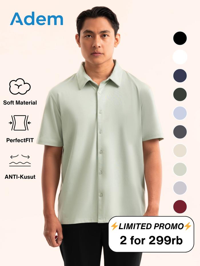 Klotifai - Adem Ss Light Green - Kemeja Lengan Pendek Pria - S
