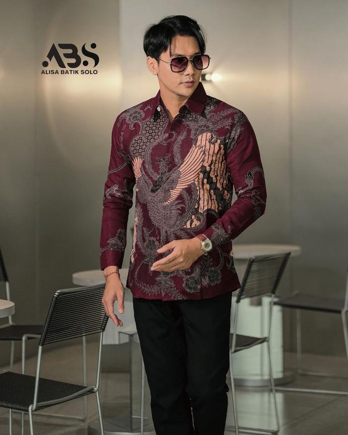 Alisa Batik Solo Slimfit Motif Burgundi Nareswara Kemeja Batik Dobby Pria Formal Keren Terlaris Premium Atasan Baju Kond