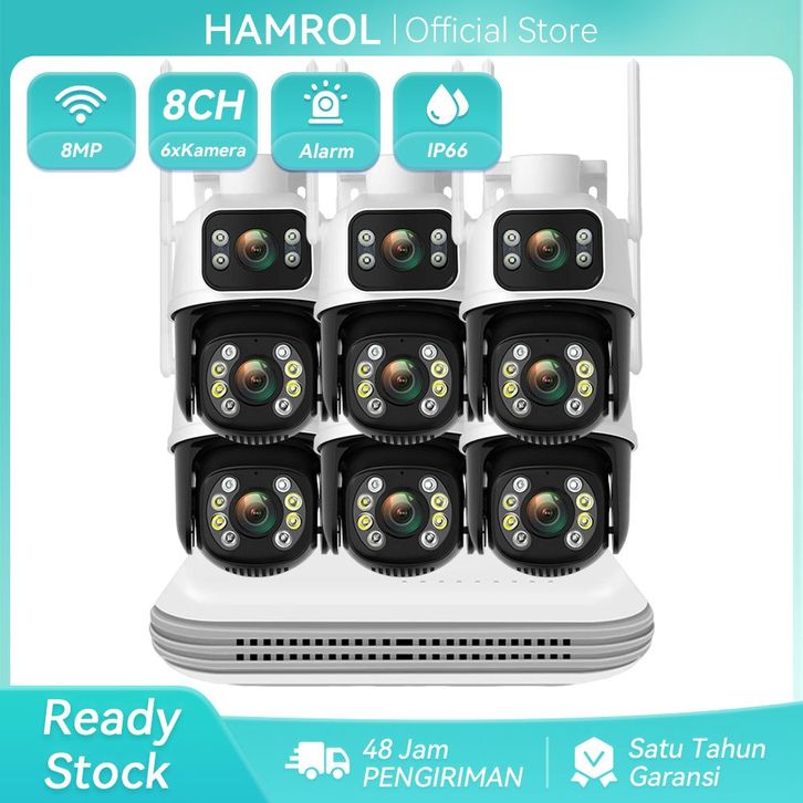 Hamrol Paket CCTV 10 Channel 6 Kamera WiFi UHD 8MP Dengan Seri Audio NVR WiFi