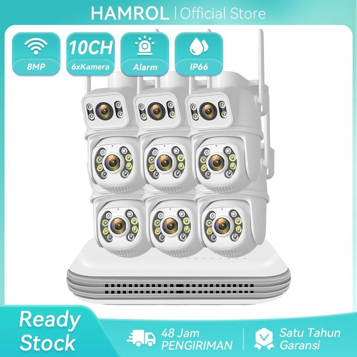 Hamrol Paket CCTV 10 Channel 6 Kamera 8MP PTZ Tahan Air+NVR Nirkabel
