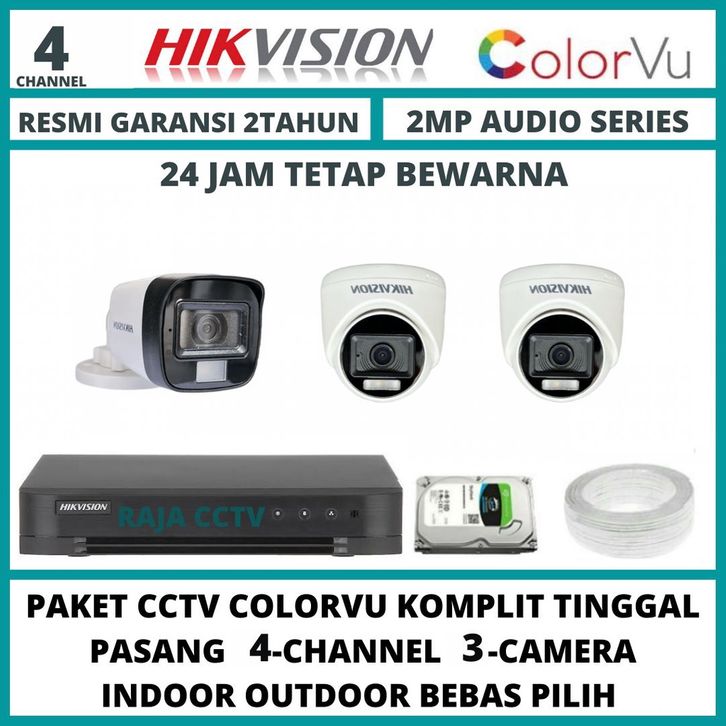 PAKET CCTV HIKVISION 2MP COLORVU 4 CHANNEL 3 CAMERA TURBO HD KAMERA CCTV COLORFUL