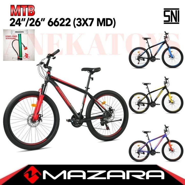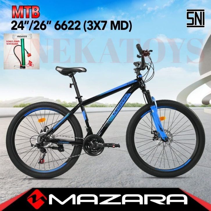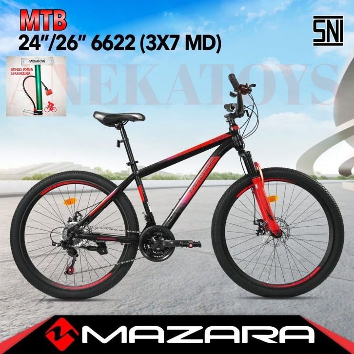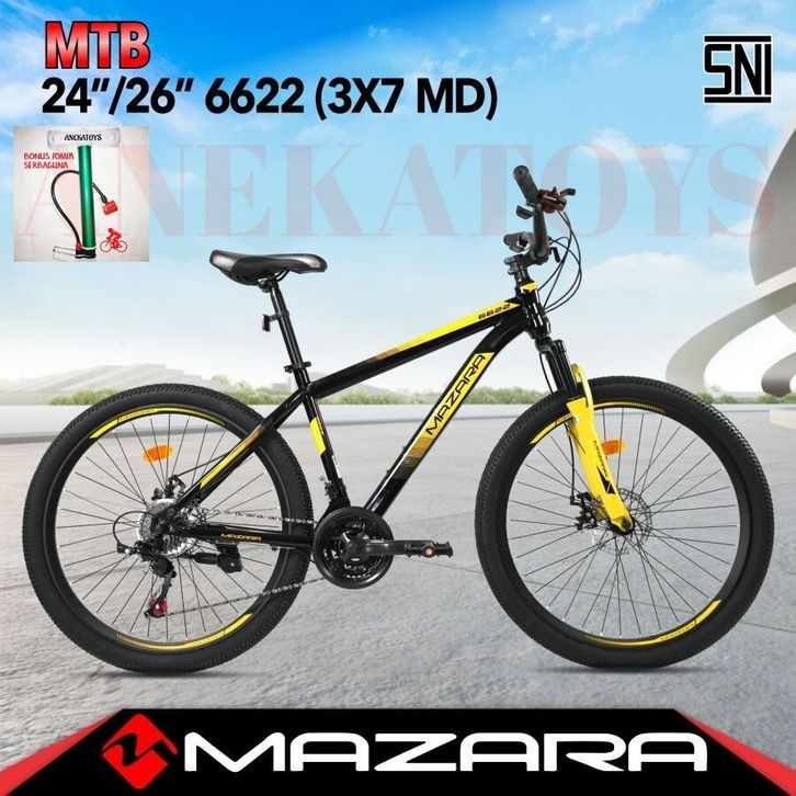 Sepeda Gunung Mazara 6622 MTB Remaja-Dewasa 24, 26 Inch Hi-Ten Steel 21Speed