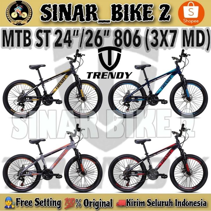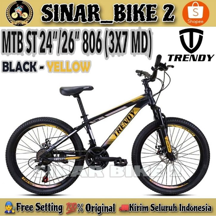 Sepeda Gunung MTB TRENDY 806 Ukuran 24 & 26 Inch 21 Speed Rem Cakram