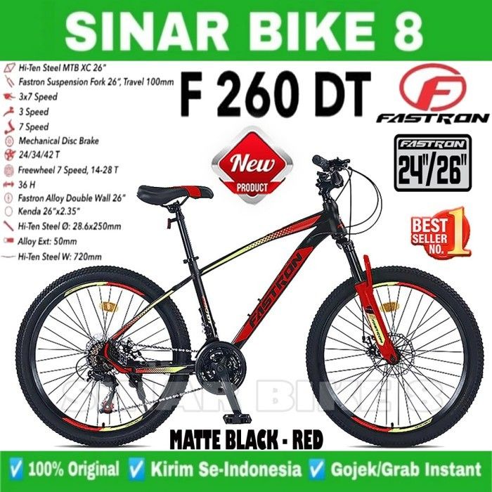 Sepeda Gunung Ukuran 24 26 Inch MTB FASTRON F 260 DT Rem Cakram Remaja Dewasa
