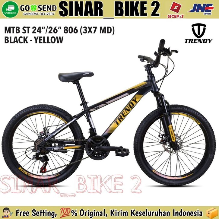Sepeda Gunung MTB TRENDY 806 Discbrake Ukuran 24 & 26 Inch 21 Speed