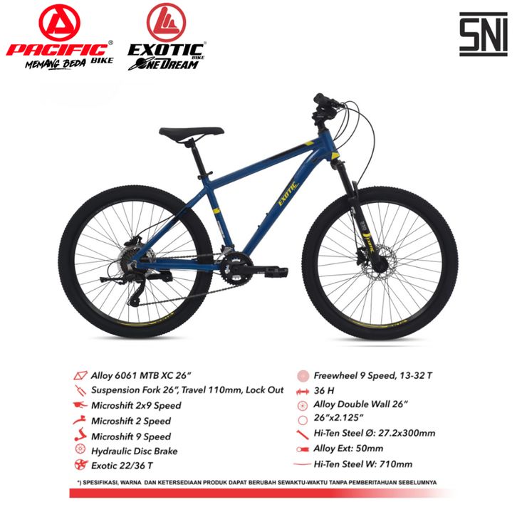 Pacific Bike Sepeda Gunung Remaja dan Dewasa MTB Exotic AH-2612 AH Frame Alloy 6061 Ukuran Ban 26
