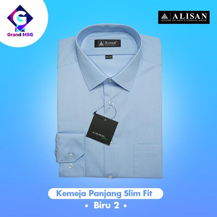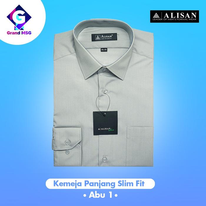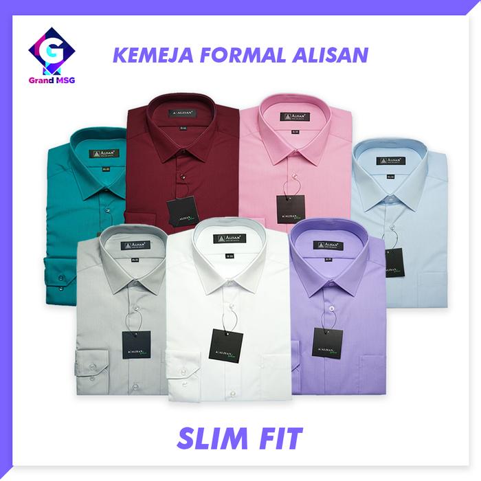 Alisan Kemeja Pria Slim Fit Lengan Panjang Original Polos Baju Atasan Kerja Cowo Alisan Formal Hem Hitam Putih Sage Gree