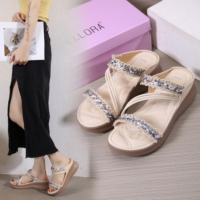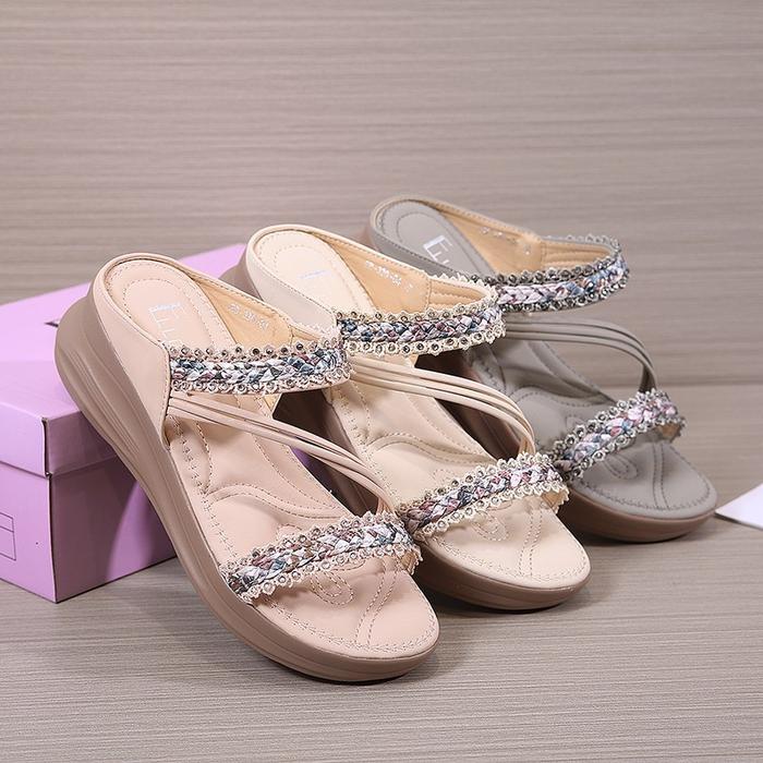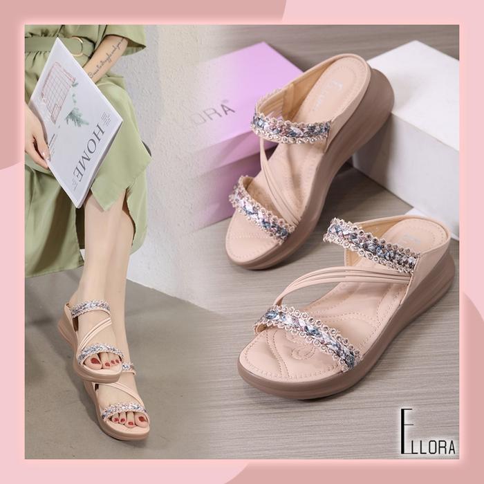 Ellora Eb330-04 Sandal Wedges Wanita Korean Style Import Premium Sandal Terbaru - Grey, 36