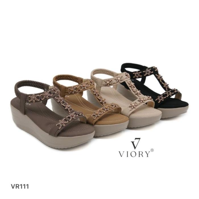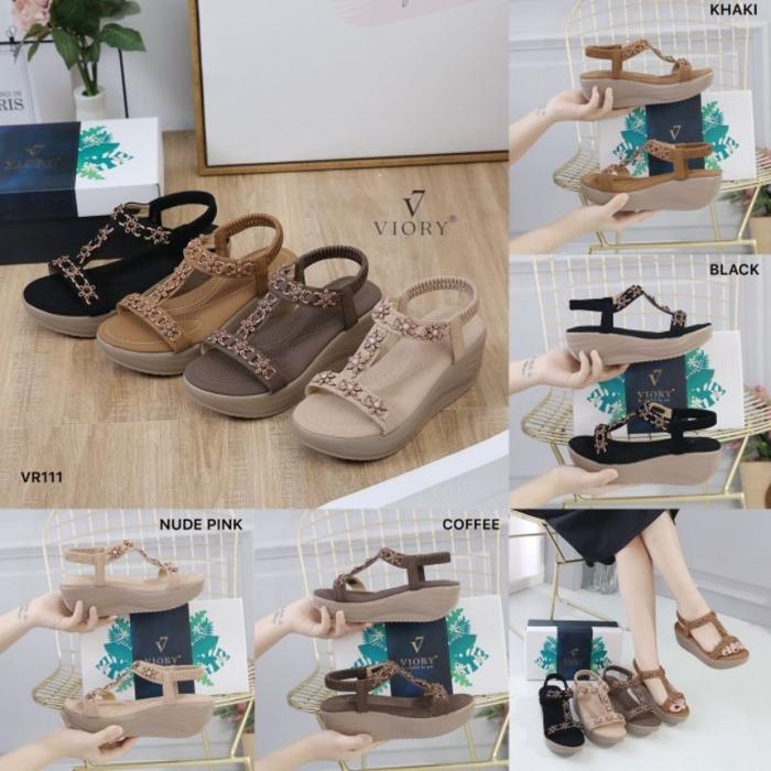 Viory Wedges Sandals Shoes #Vr111 Wanita Black - Khaki, 36