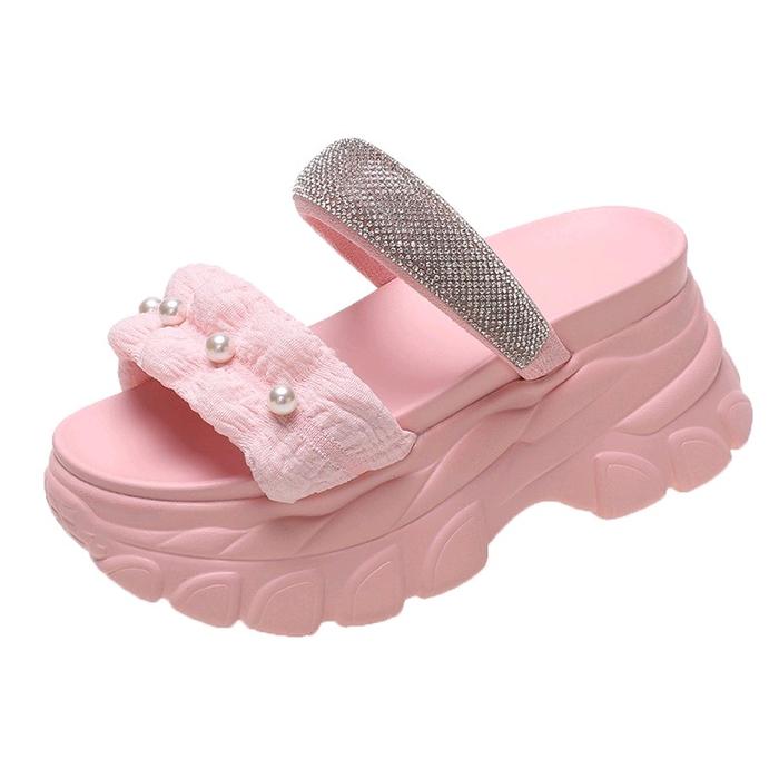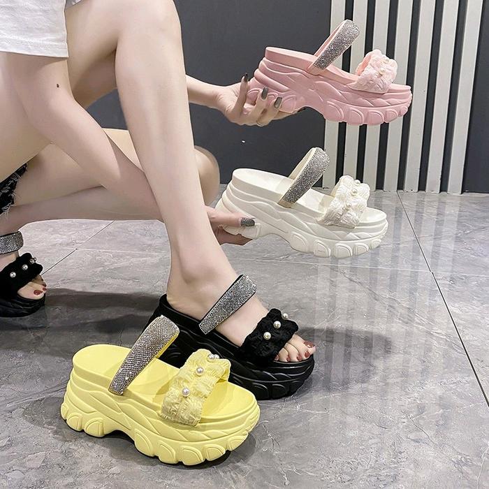 Yzl 1482 Sandal Wanita 6820 Wedges Korea Import Ringan Tinggi 8Cm - 36, Pink
