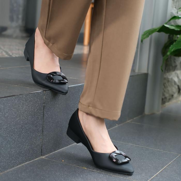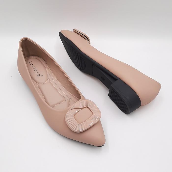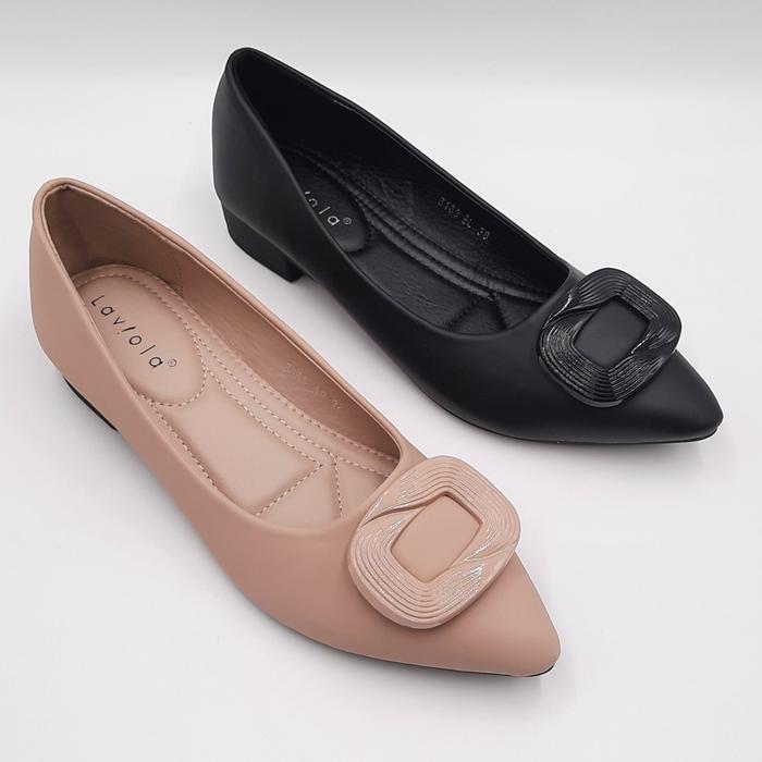 Laviola 3183 Lst - Sepatu Pantofel Wanita Black Dan Apricot Hak 2 Cm Flat Shoes - Apricot, 37