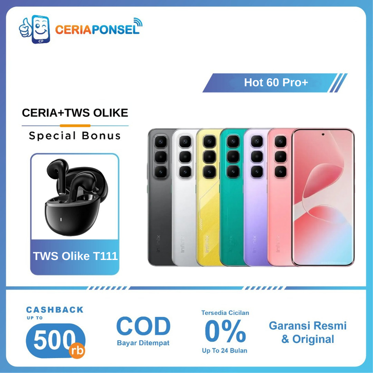 Infinix Hot 60 Pro+ 8/128GB & 8/256GB Mediatek Helio G200 (6nm) 5160mAh 45W | Garansi Resmi Infinix Indonesia 1 Tahun