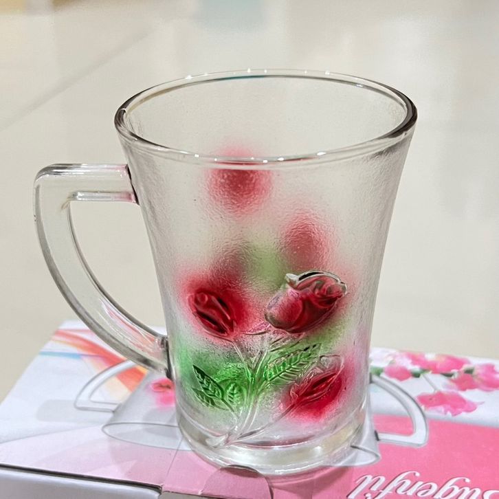 Satu Set Gelas Gagang Kaca Warna Bugenfil Isi 2 Gelas Kaca