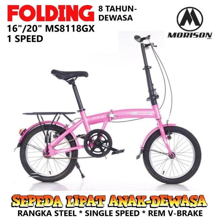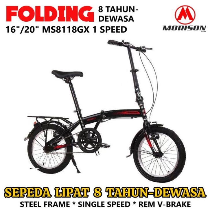 Sepeda Lipat Morison MS8118GX Remaja-Dewasa 16" 20" Steel Frame Single Speed V-Brake Folding Bike