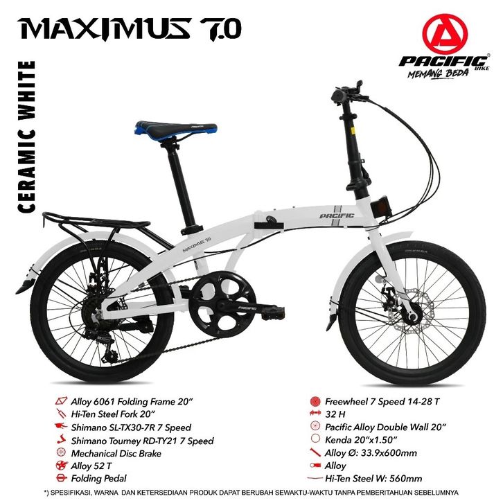 PASTI ORI PACIFIC MAXIMUS 7.0 20 INCH SEPEDA LIPAT DEWASA REMAJA 7 SPEED ALLOY