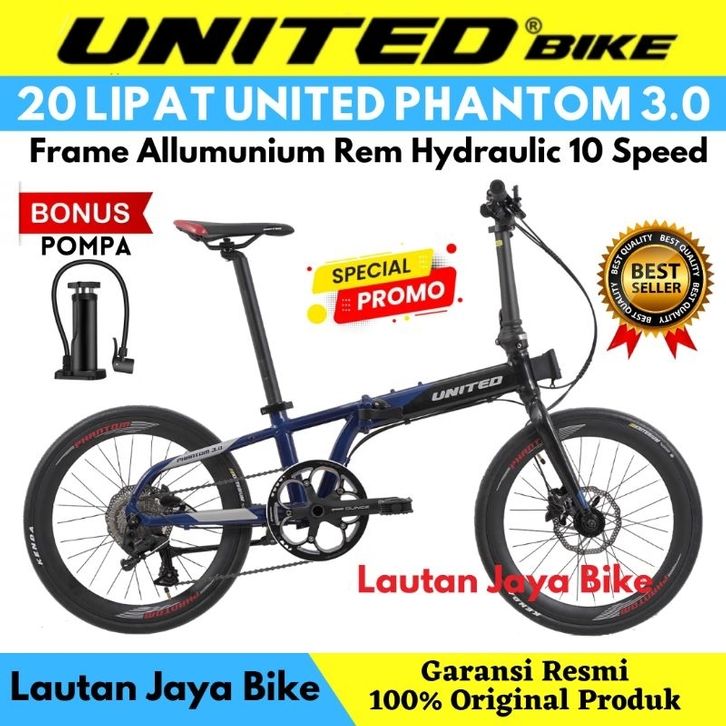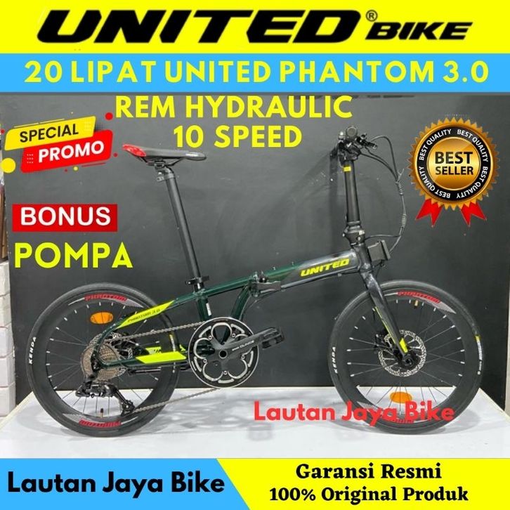 Sepeda Lipat 20 United Phantom 3.0 10 Speed Rem hydraulic Bonus Pompa