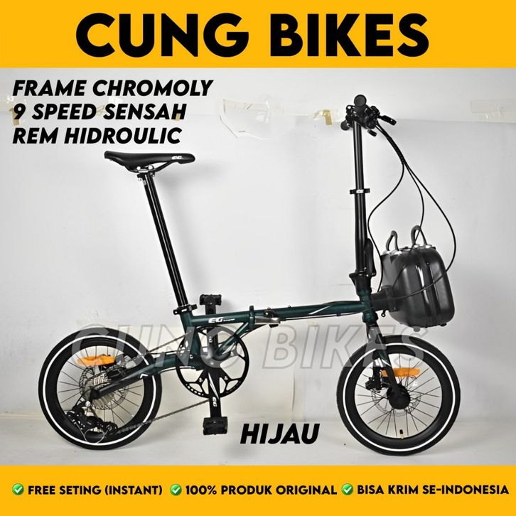 Sepeda Lipat Evergreen Chromoly Maximus 16 Inch Rem Hydraulic 9 Speed