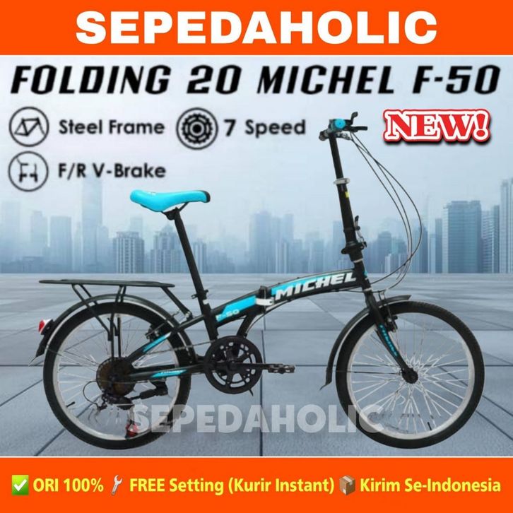 Sepeda Lipat VELION DB74 / MICHEL F50 F 50 Ukuran 16 18 20 Inch Rem Cakram Boncengan 7 Speed Dewasa