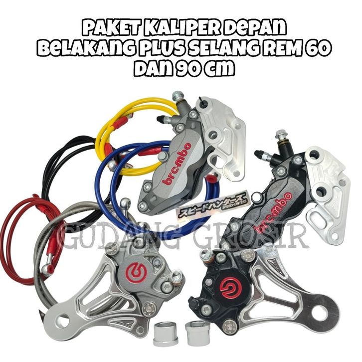 PROMO SET KALIPER DEPAN BELAKANG PLUS BREKET PLUS SELANG REM 60 CM DAN 90 CM KALIPER BIG LOGO 2P DAN BIG POT 4P NINJA,