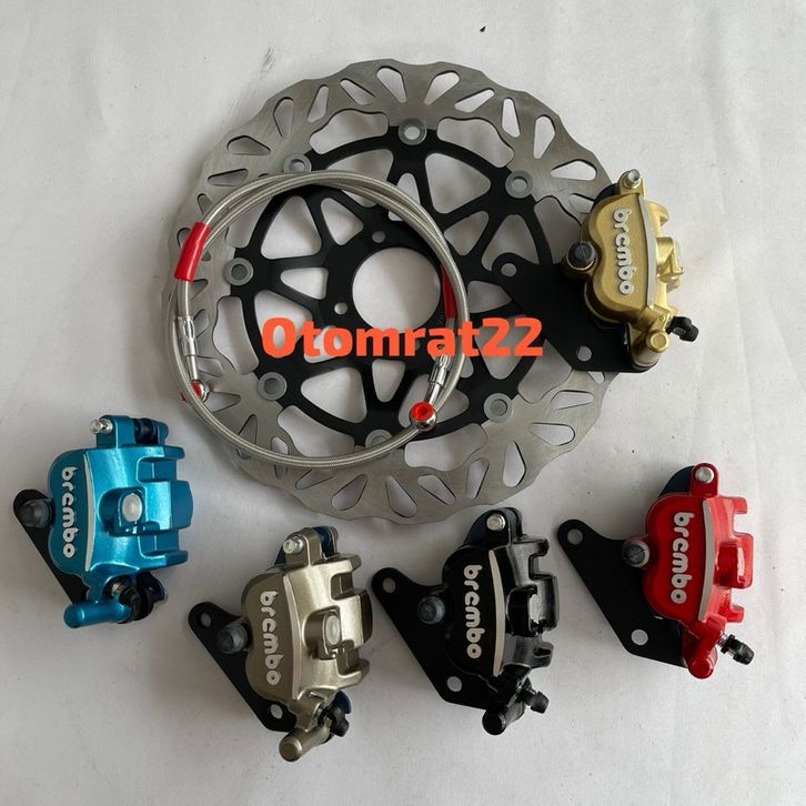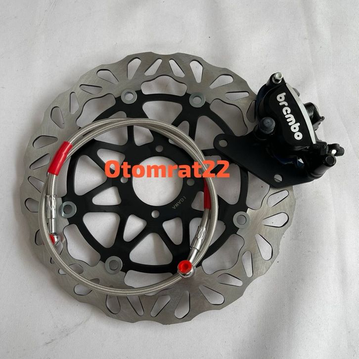 PIRINGAN DISC CAKRAM RX KING NEW 300MM 1PAKET KALIPER SAMURAI 2PISTON PLUS SELANG REM 95CM CARBON