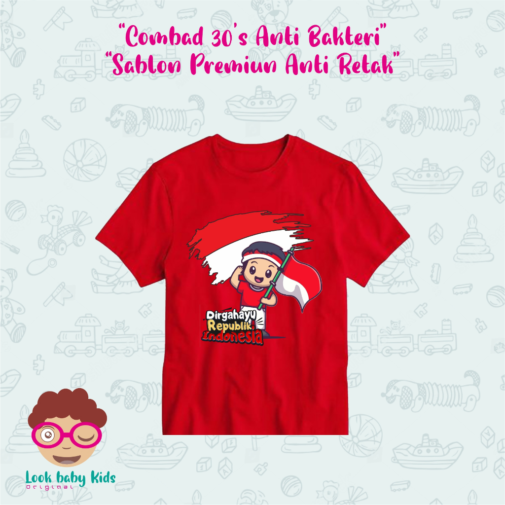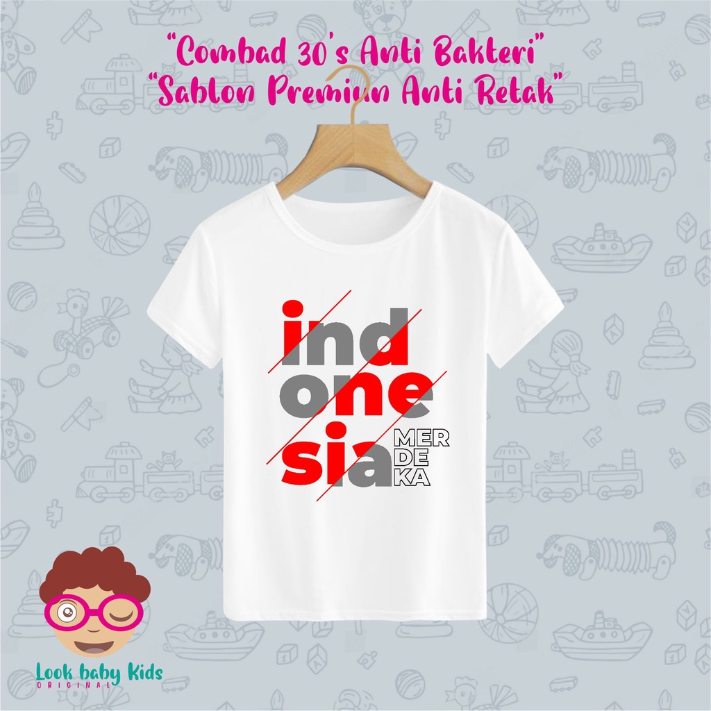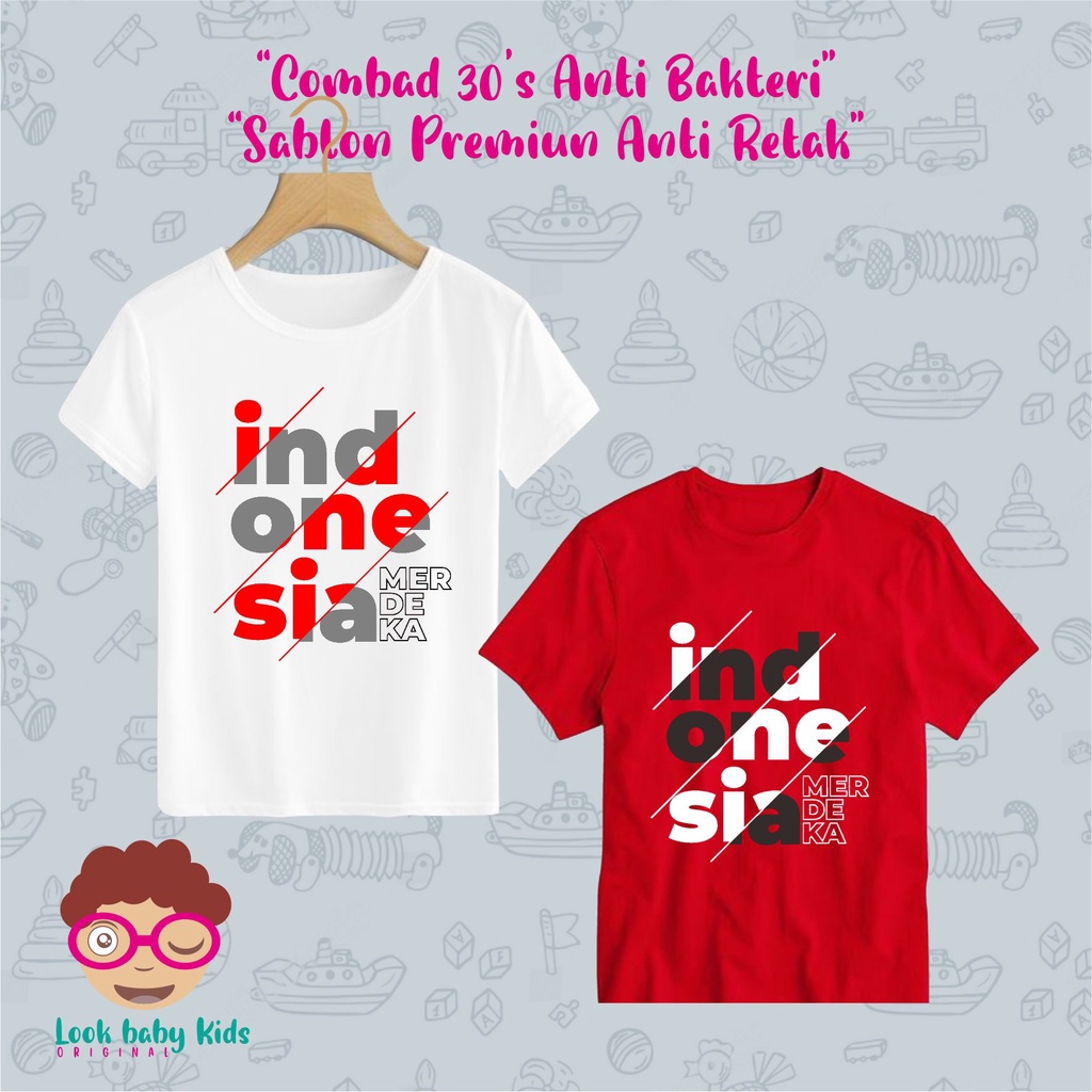 Kaos Indonesia Merdeka Anak Dan Dewasa Katun Anti Bakteri