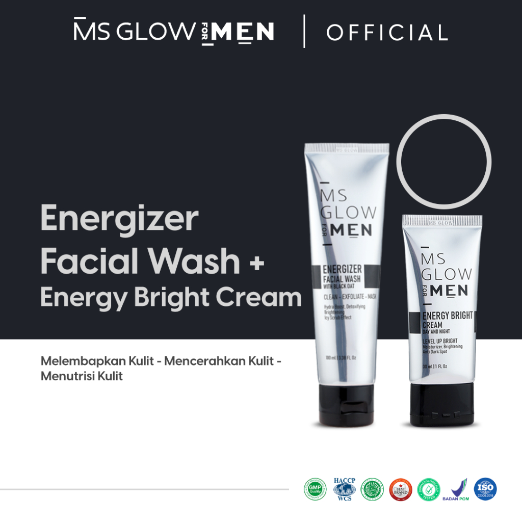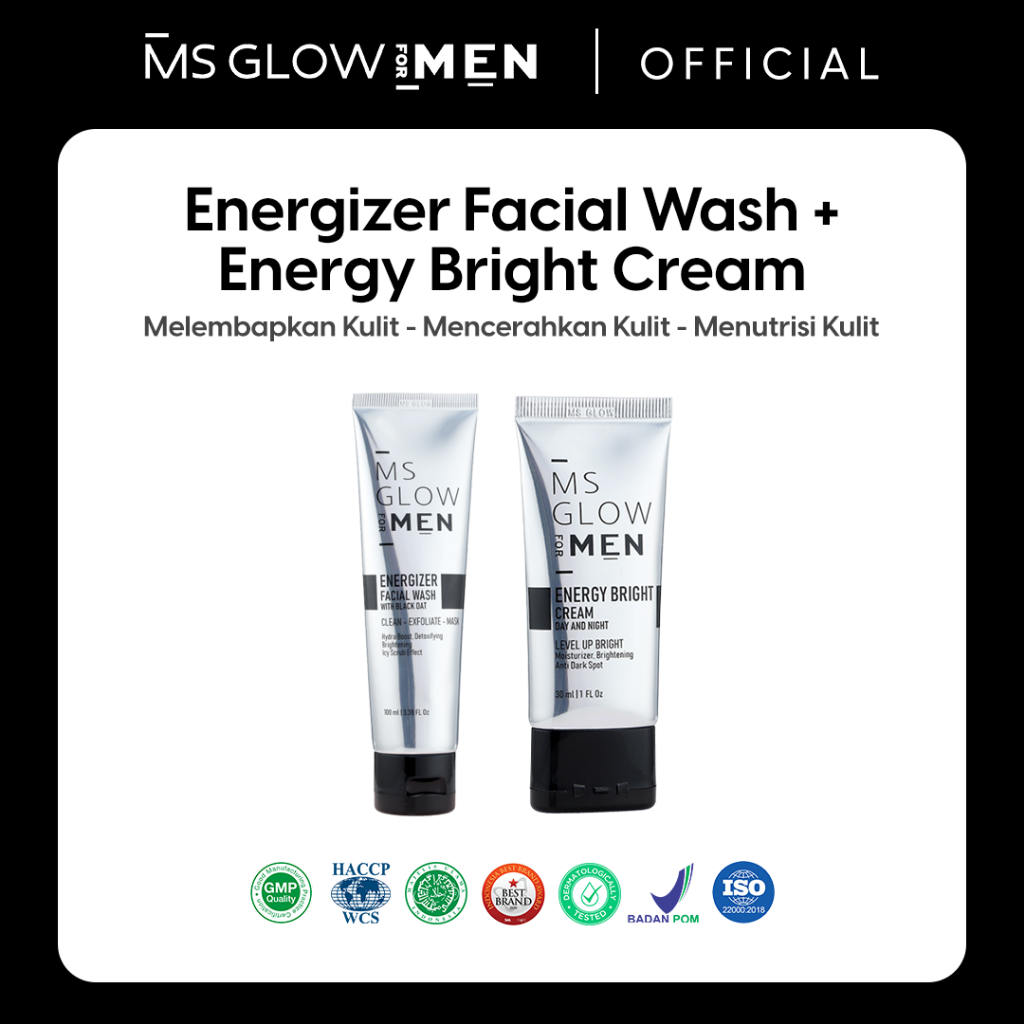 MS Glow For Men - Energizer Facial Wash - 100 ml + Energy Bright Cream - 30 ml