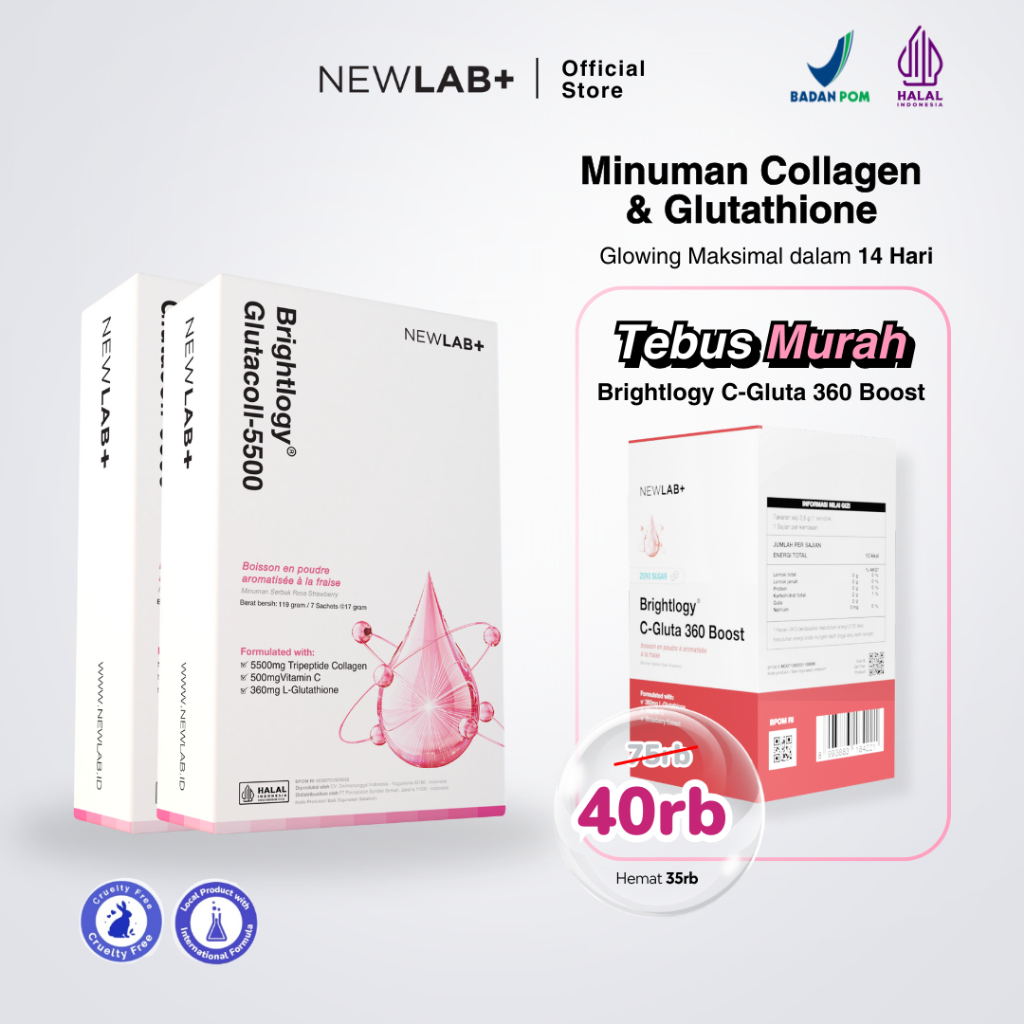 NEWLAB Paket Hemat 2 Box Brightlogy GlutaColl-5500 | L- Glutathione | Collagen Drink