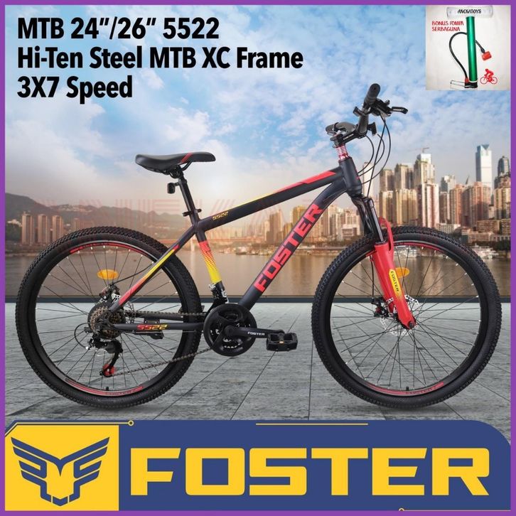 BONUS POMPA Sepeda Gunung Foster 5522 MTB 20/24/26 Inch Hi Ten Steel XC Frame 3x7 Speed