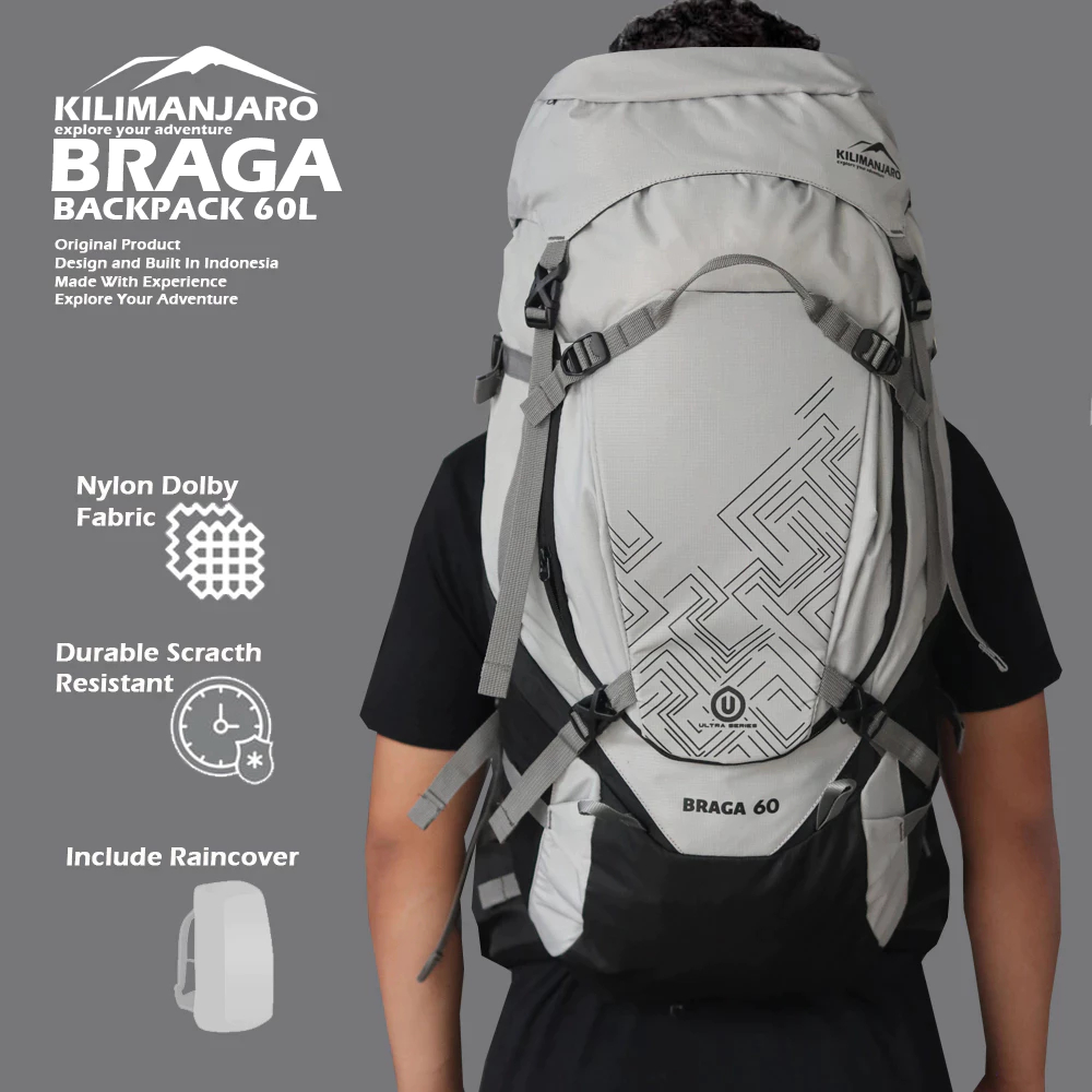 KILIMANJARO BRAGA TAS CARRIER 60 L ORIGINAL FREE RAINCOVER - TAS GUNUNG 60L