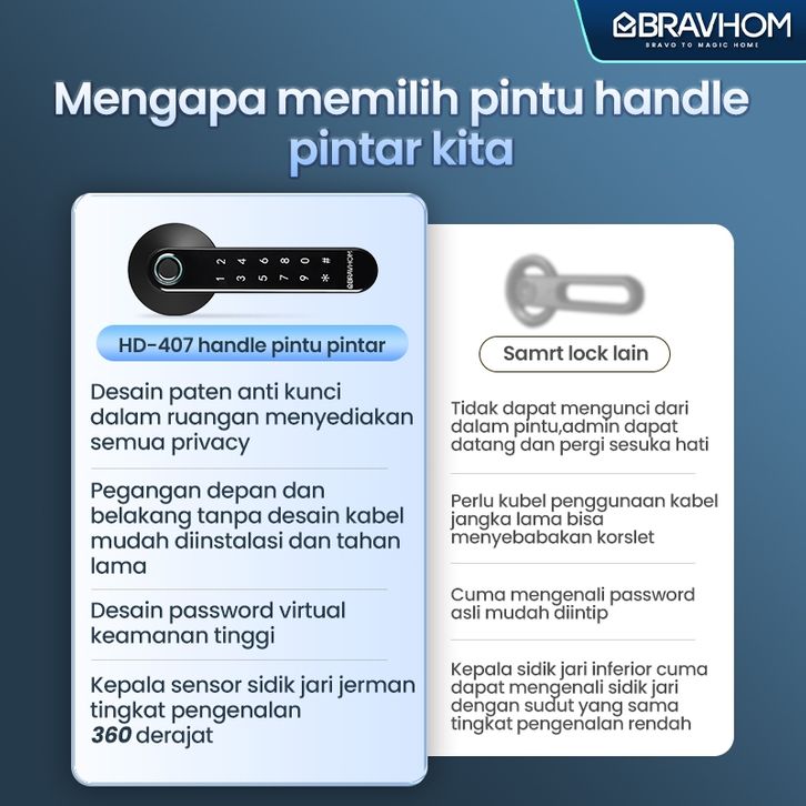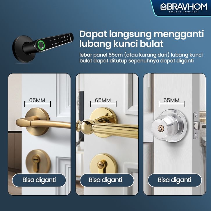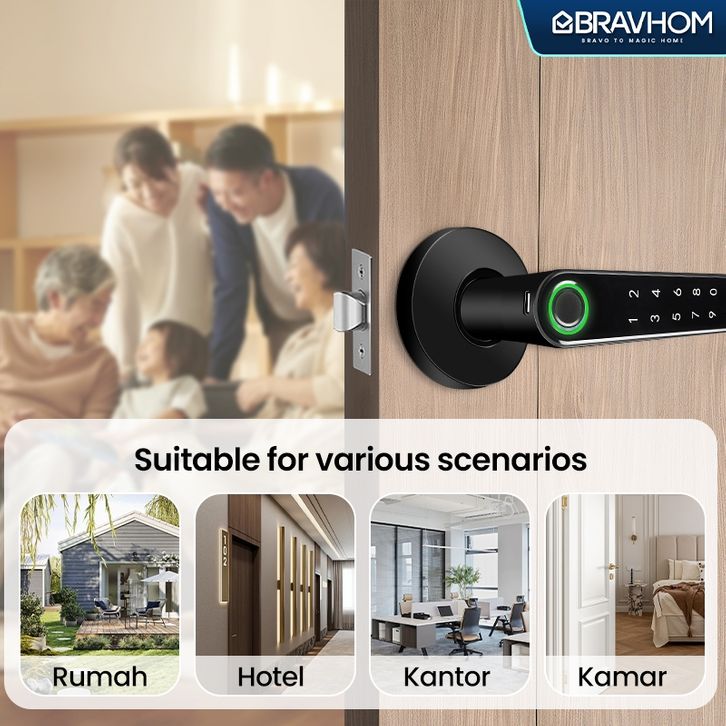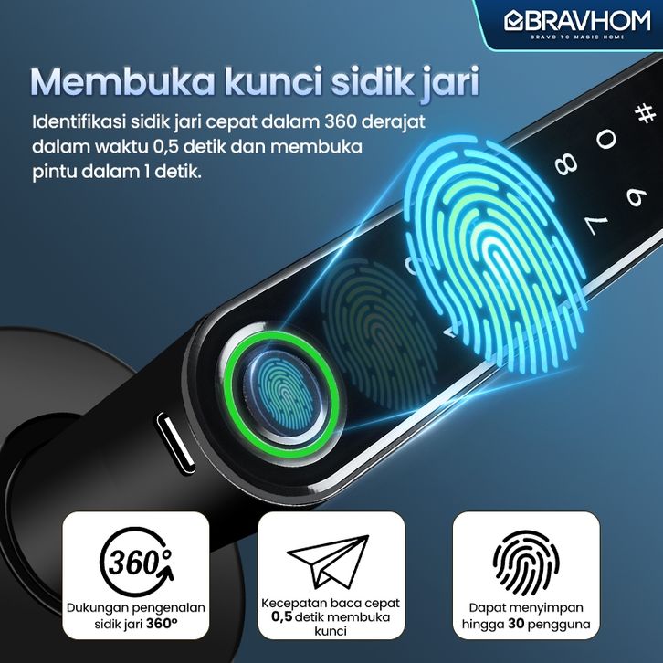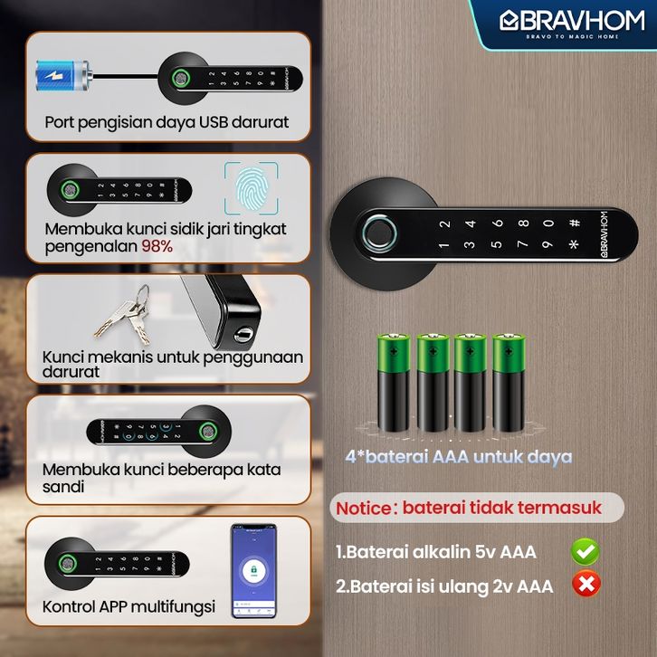 BRAVHOM Kunci Pintu digital sidik jari password dan App kontrol Smart Handle Door Lock Home Fingerprint Electronic Door