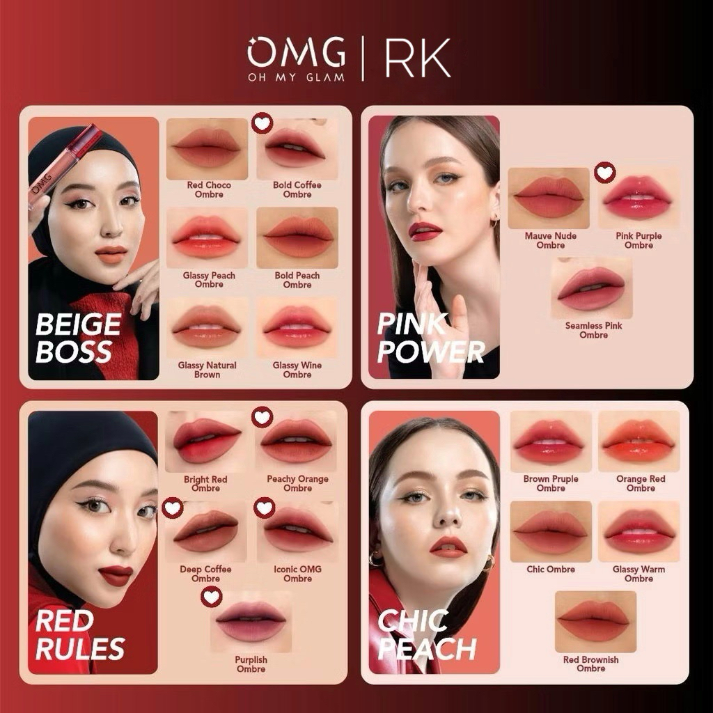 Bright Red 10+25, Red Brownish 10+12, Purplish 22+24, Peachy Orange 04+27, Bold Peach 04+12, Bold Coffe 13+15, Chic 22+12, Deep Coffe 14+15, Iconic 13+12, Seamless 23+01