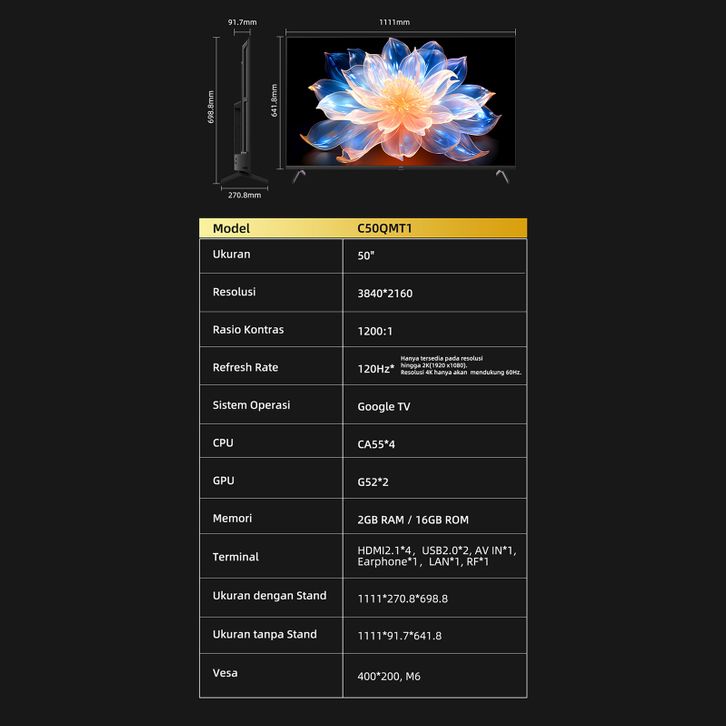 CHiQ QLED TV 4K 50 inch Google Smart QLED PRO Digital TV Dolby Audio DBX-TV Google Assistant (C50QMT1)