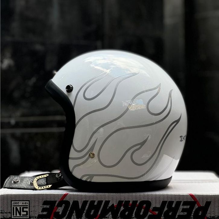 PAPICHOLLO PROMO Helm Slimhead Tx 500 Half Face White Flame Justin Bieber Motif Api