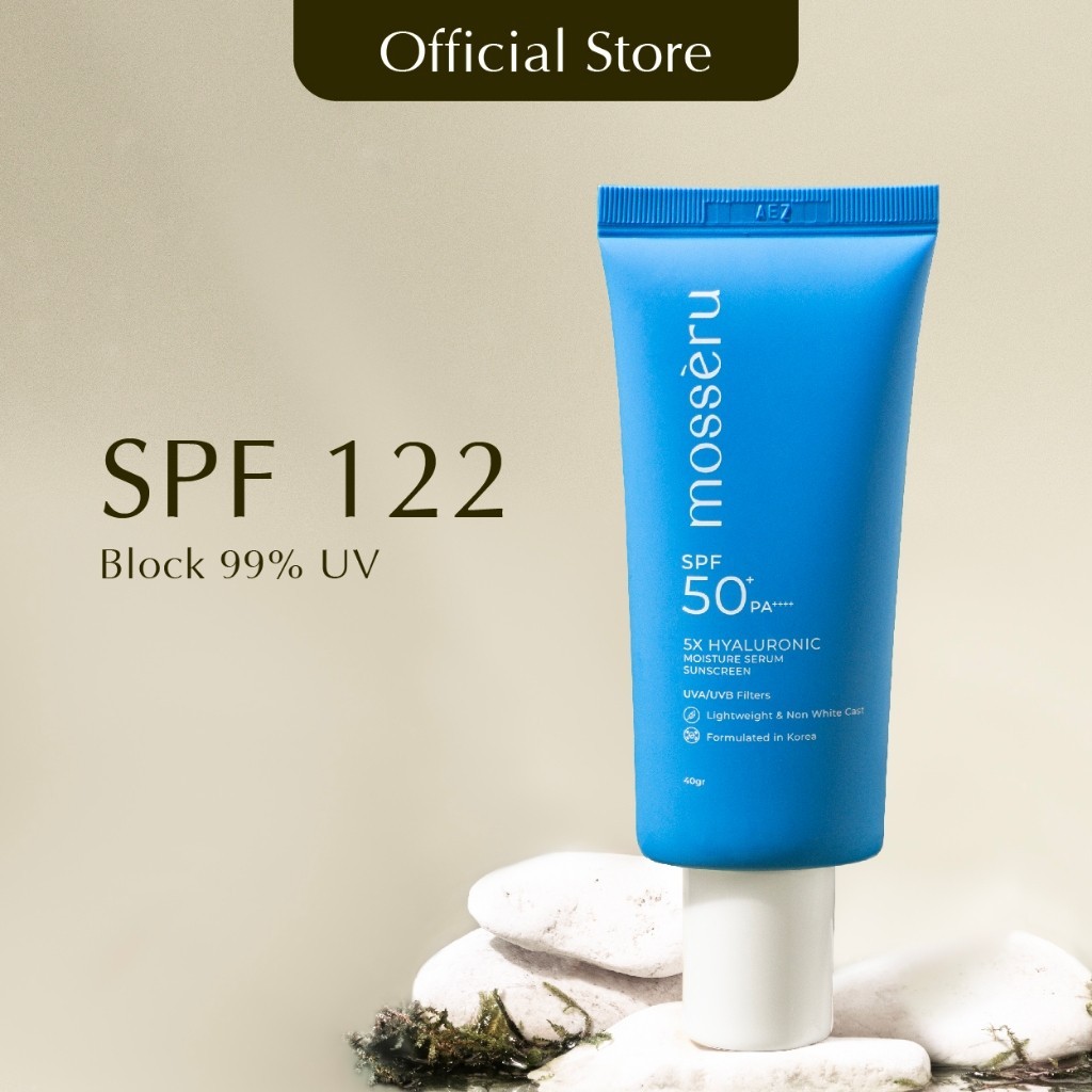 MOSSERU 5X HYALURONIC MOISTURE SERUM SUNSCREEN SPF 50 PA++++ | 5X HYALURONIC ACID | DUSTRESS OUT TECH | 3 ANTIOXIDANTS |