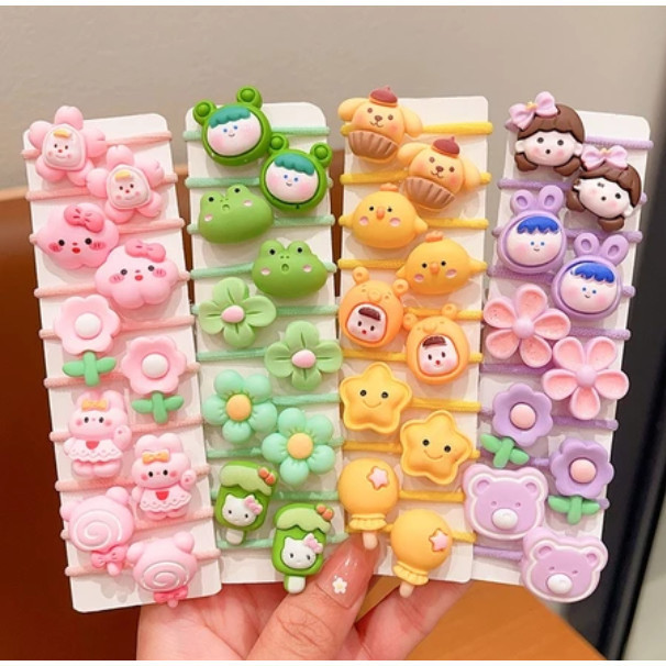 IKAT RAMBUT ANAK 10PCS MODEL KOREA KARAKTER LUCU / AKSESORIS RAMBUT ANAK KARET
