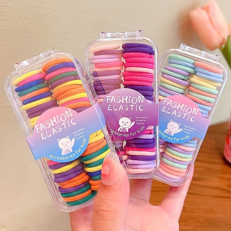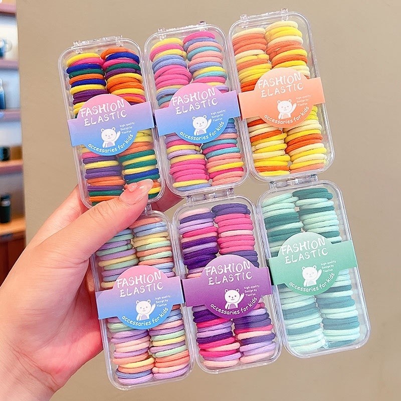 FREE BOX - 60PCS IKAT RAMBUT ANAK WARNA WARNI / IKATAN RAMBUT KOREA ANAK / IKAT RAMBUT ELASTIS 4.7